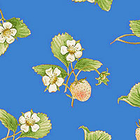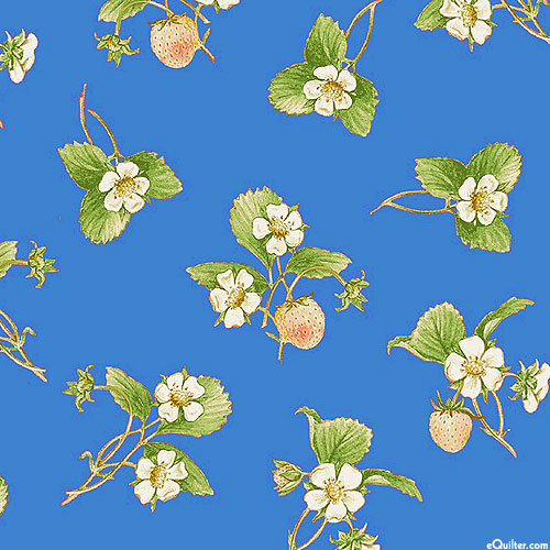 Fruity and flowery, plump strawberries ripen as lush florals blossom across this sweet and summery design. Larger branches are about 1-3/4", from the 'Strawberry Garden' collection by Jane Shasky for Henry Glass & Co.