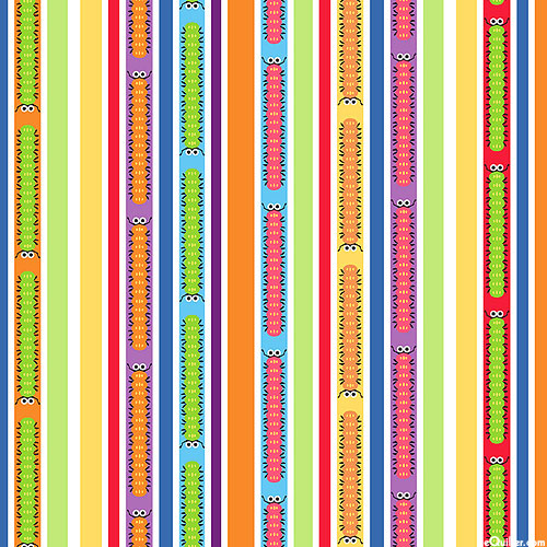 Long bugs crawl across this insectine stripe. Wider stripes are about 1/4", stripes run the length of the fabric, from the 'Bug, Bug, Bug' collection by Tim Read for Henry Glass & Co.