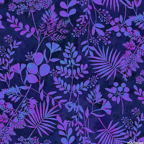 Leafy fronds twine and tangle in a gentle embrace of forest beauty. Larger leaf fronds are about 4", from the 'Down The Fairy Path' collection by Color Principle for Henry Glass & Co.