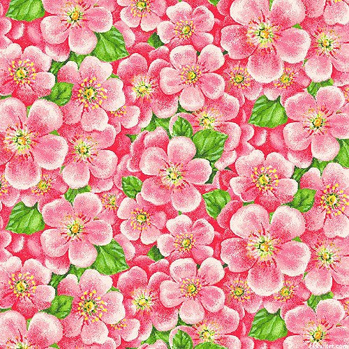 A lush landscape of flourishing flowers coalesce to create a captivating garden gala of texture and tone. Larger flowers are about 1", from the 'Enchanted Forest' collection by Jane Alison for Henry Glass & Co.