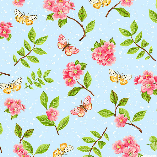 Butterflies flutter freely within a lush landscape of flourishing flowers that coalesce to create a captivating garden gala of texture and tone. Larger branches are about 2-1/2", from the 'Enchanted Forest' collection by Jane Alison for Henry Glass & Co.