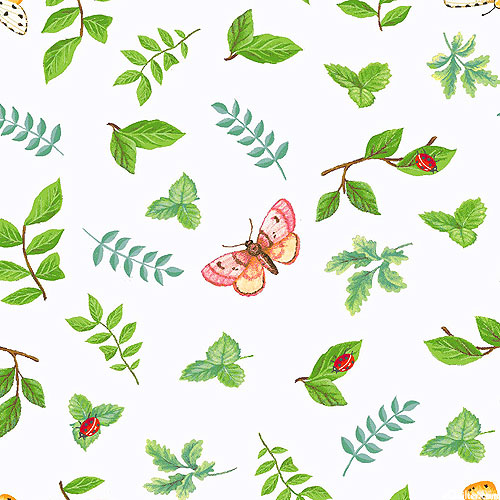 Ladybugs crawl on leafy branches as elegant butterflies flutter freely in the space between in a charming expression of nature's beauty. Larger branches are about 1-1/2", from the 'Enchanted Forest' collection by Jane Alison for Henry Glass & Co.