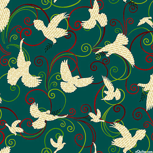 Swirling lines accent a scatter of charming doves fluttering through the air of this festive holiday design. Larger birds are about 2-1/2", from the 'Peace On Earth' collection by Color Principle for Henry Glass & Co.