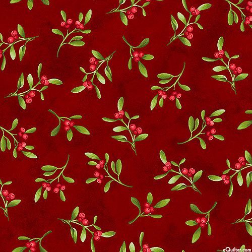 Winterberry sprigs are tossed against a gently mottled background in this festive Christmas-themed design. Larger branches are about 1-1/2", from the 'Hollyville Manor' collection by Jan Mott for Henry Glass.