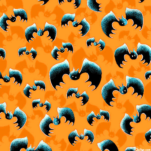 Wicked vampire bats flutter across this fun and festive Halloween-themed design. Larger bats are about 2", with glow-in-the-dark, from the 'After Life Party' collection by Gail Green for Henry Glass & Co.
