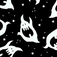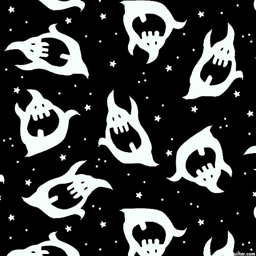 Spooky and silly ghosts float across this fun and festive Halloween-themed design. Larger ghosts are about 2", with glow-in-the-dark, from the 'After Life Party' collection by Gail Green for Henry Glass & Co.
