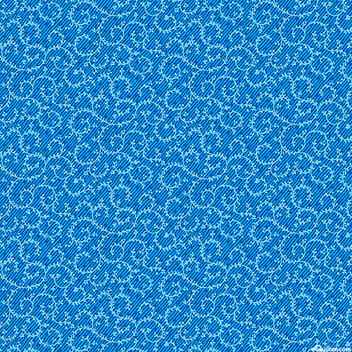 Viny spirals twine and tangle over an atmospheric ground full of small lines in a serene scene of garden charm. Larger swirls are about 1/2", from the 'Crescent Swirl' collection by Kaye England for Wilmington Prints.