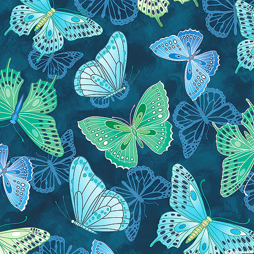Elegant butterflies dance and flutter through the sky in this charming design. Larger butterflies are about 2-3/4", 'Butterfly Dance' from the 'Butterfly Calypso' collection by Kanvas Studio for Benartex.