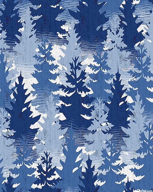 Silhouetted trees coalesce into a dense forest across this lush tonal. Taller trees are about 4", from the 'Lake Retreat' collection by Wilmington Prints.