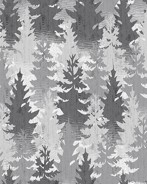 Wilmington Prints Lake Retreat - Woodland Trees - Pewter Gray