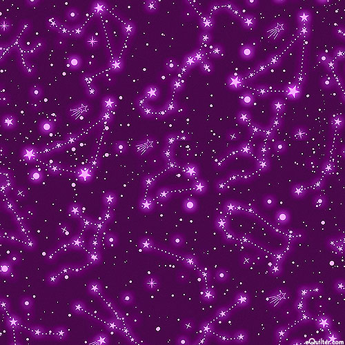 Patterns coalesce between stars in the night sky to create constellations of myth and legend. Larger constellations are about 3", with pearlescent, 'It's In The Stars' from the 'Celestial Skies' collection by Skyline Studio for Benartex Fabrics.
