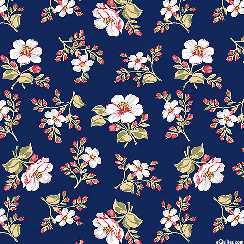 Benartex Fabrics Bandana Medley - Floral Toss - Dk Navy