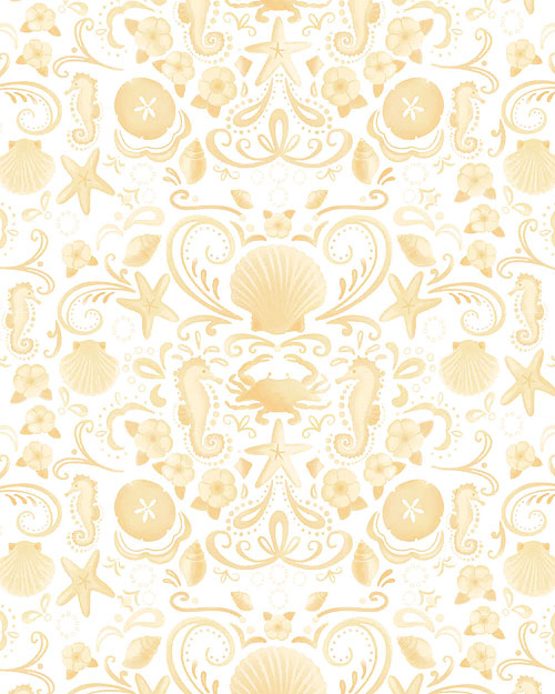 A vibrant scatter of seashells bring an aquatic allure to this oceanic design. Larger shells are about 1-1/4", 'Seaside Tonal' from the 'Beach Retreat' collection by Andi Metz for Benartex Fabrics.