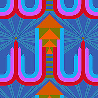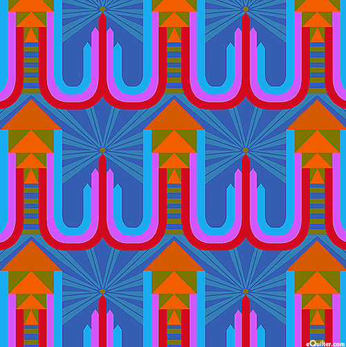 Graphic shapes, lines and arrows come together to create a semblance of a skyline in this wacky and vector-driven print. Horizontal repeat is about 3-1/4", 'New York' from the 'Welcome Home' collection by Anna Maria Horner for Free Spirit.