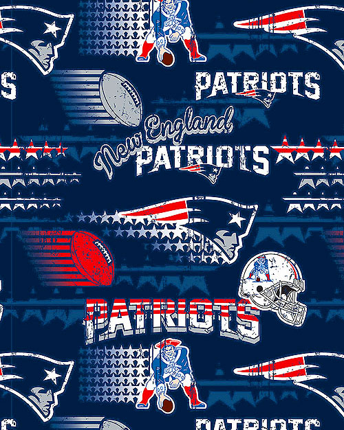 A must-have for any Patriots fan, this sports-themed fabric features the Patriots logo depicted against a solid background with footballs and helmets scattered in the space between. 58" wide, larger logos are about 3-1/2", from the 'NFL' collection, © N.T.T. Inc., licensed and © NFL. It is intended for home use only, not for manufacturing.