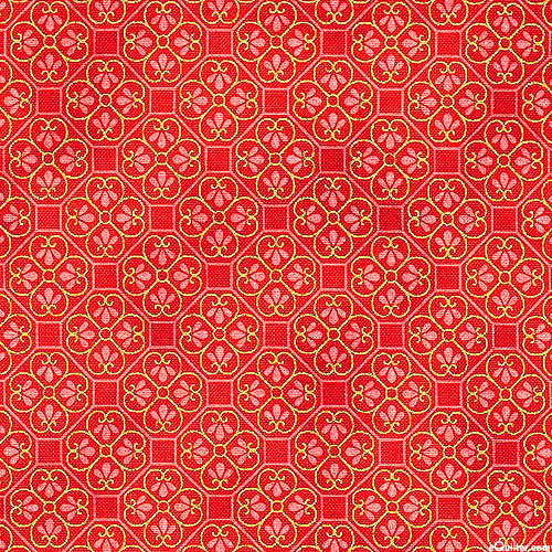 Kaufman Fabrics Honoka - Medallion Tiles - Scarlet/Gold