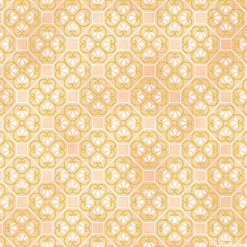 Flowery tiles and filigreed with shimmering metallic, lending a regal charm to this elegant tonal. Tiles are about 3/4", with gold metallic, from the 'Imperial Collection: Honoka' collection by Studio RK for Robert Kaufman Fabrics.