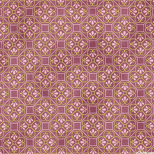 Kaufman Fabrics Honoka - Medallion Tiles - Mauve/Gold
