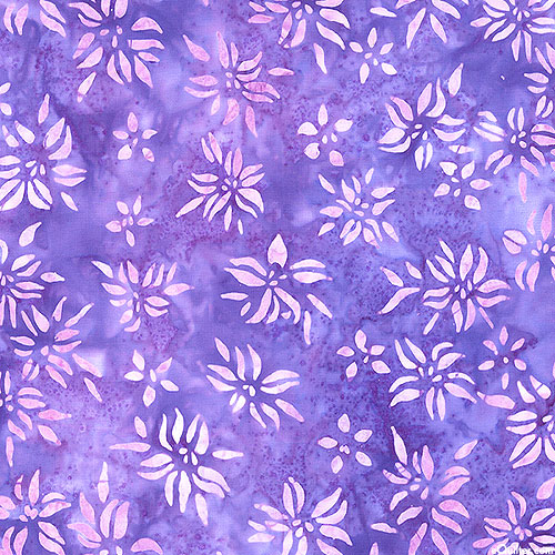 Tossed flower petals fluttering in the wind are depicted in vivid hues within mottled batik textures. Batik, larger flowers are about 2", from the 'Artisan Batiks: Lily Bella' collection by Lunn Studios for Artisan Batiks from Robert Kaufman Fabrics.