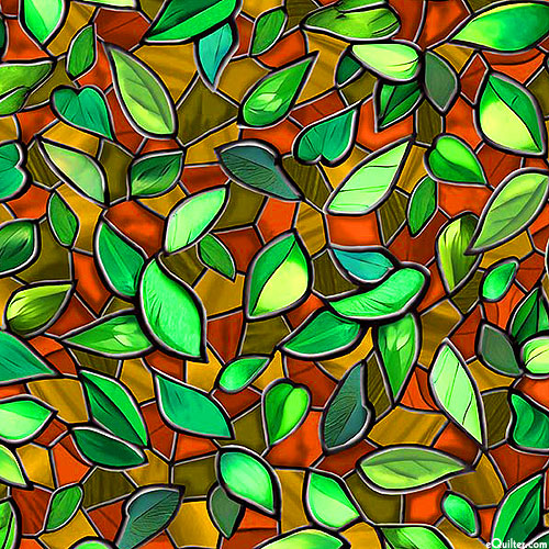 Scattered leaves styled like a stained glass painting coalesce into a mesmerizing mosaic across this dreamy design. Digitally printed, larger leaves are about 2", from the 'Tree of Life' collection by JQ Licensing for Quilting Treasures.