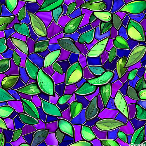 Scattered leaves styled like a stained glass painting coalesce into a mesmerizing mosaic across this dreamy design. Digitally printed, larger leaves are about 2", from the 'Tree of Life' collection by JQ Licensing for Quilting Treasures.