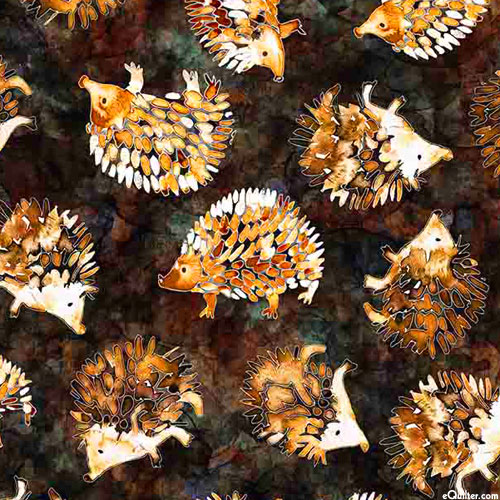 Small and adorable hedgehogs are tossed against a mottled background in this charming woodland design. Digitally printed, larger hedgehogs are about 3", from the 'Wild Wood' collection by Dan Morris for Quilting Treasures.