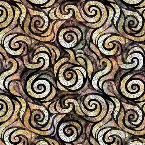 Spiraling shapes intersect and collide in a mesmerizing dance of shadow and hue across this dazzling design. Digitally printed, larger spirals are about 2", from the 'Wild Wood' collection by Dan Morris for Quilting Treasures.