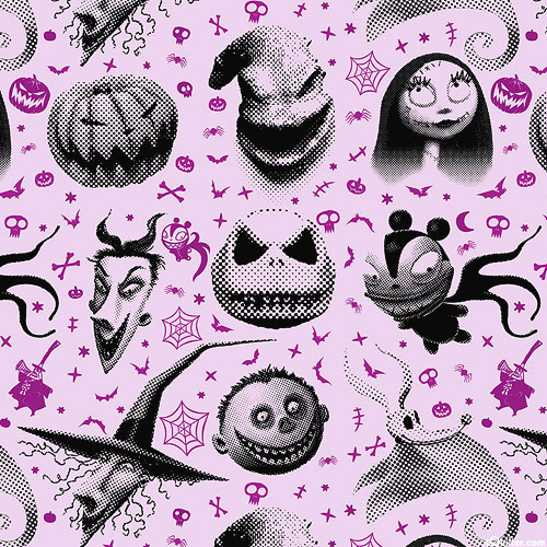 From Tim Burton's timeless classic, characters from The Nightmare Before Christmas are depicted across the design including Jack Skellington, Sally, Oogie Boogie, and the Pumpkin King. Larger character portraits are about 4-1/2", 'Character Pack' from the 'The Nightmare Before Christmas' collection by © Disney for Springs. Disney stipulates that this product cannot be shipped outside the USA, Puerto Rico and Canada. It is intended for home use only, not for manufacturing.