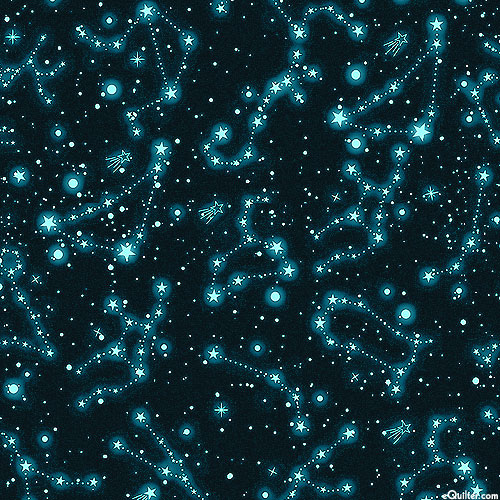 Patterns coalesce between stars in the night sky to create constellations of myth and legend. Larger constellations are about 3", with pearlescent, 'It's In The Stars' from the 'Celestial Skies' collection by Skyline Studio for Benartex Fabrics.
