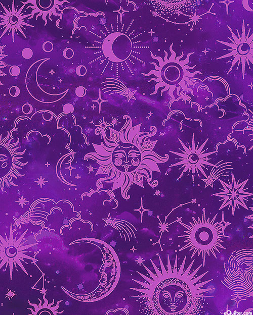 Benartex Fabrics Celestial Skies - Heavenly - Royal Purple/Pearl