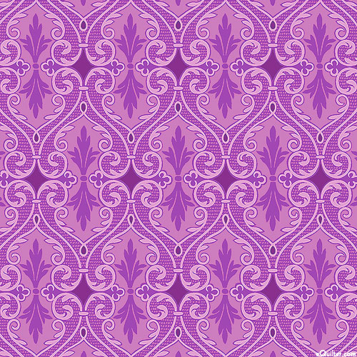 A finely filigreed repeat evokes royal charm across this elegant tonal. Repeat is about 2", with pearlescent, 'Damask' from the 'Circle of Butterflies' collection by Jackie Robinson for Benartex.