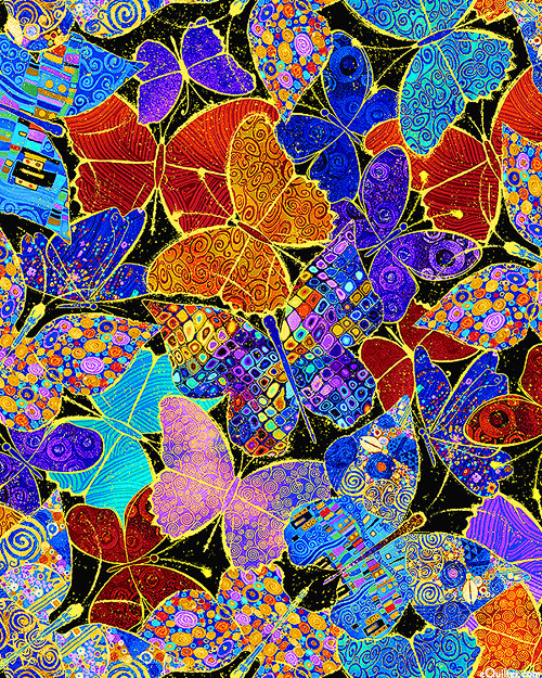 A mesmerizing myriad of butterfly wings are scattered across the design in a vibrant spectrum of vividly variegated hues. Please prewash and allow for up to 7% shrinkage. 108" wide quilt backing, larger butterflies are about 4", 'Packed Butterflies' from the 'Extra Wide Backings' collection by Chong-A Hwang for Timeless Treasures.