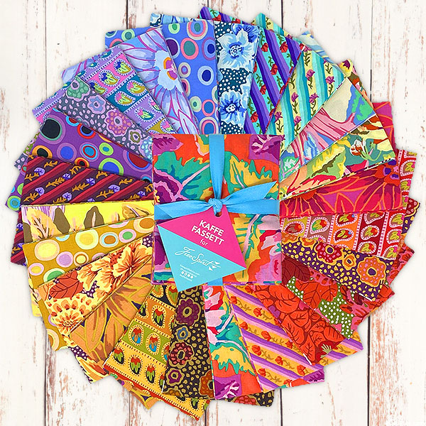 The vibrant colors and whimsical florals and patterns of this unique pre-cut pack are just what you would expect from Kaffe Fassett! Add it to your stash or be inspired to create a unique, inspired project of your own. 'Kaffe Fassett - From The Archives' fat quarter pack by Kaffe Fassett, includes 24 fat quarters.