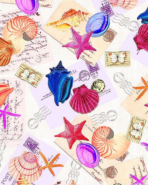 Digitally printed, larger envelopes are about 4-1/2", 'Sea Vignette Postcard' from the 'Seaing' collection by Michael Miller Fabrics.