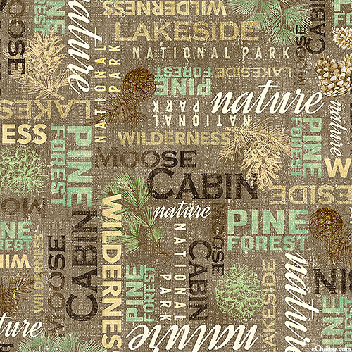 Digitally printed, taller text is about 1", 'Wilderness Words' from the 'Nature's Landscapes' collection by Michael Miller Fabrics.