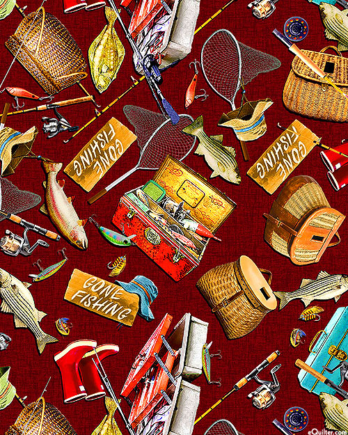 Digitally printed, larger fishing poles are about 8-1/4" long, 'Fishing Fun' from the 'Girls Gone Fishing' collection by Michael Miller Fabrics.