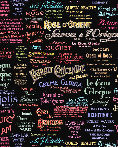 Digitally printed, taller text is about 3/4", 'Beauty Ads' from the 'The Gilded Age' collection by Aimee Stewart for Michael Miller Fabrics.