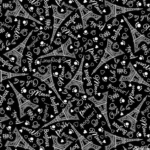 Eiffel Tower is about 2-1/2", 'Bonjour Paris' from the 'Parisian Cats' collection by Michael Miller Fabrics.