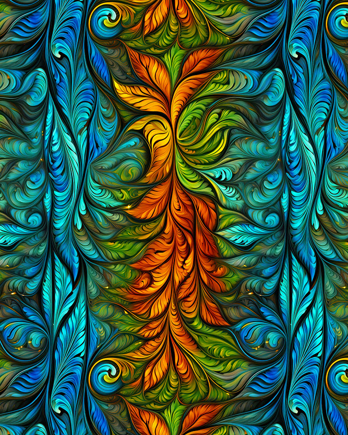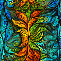 A dense canopy of curling flourishes coalesce to create dreamy landscape of rich and vibrant hues. Digitally printed, larger leaves are about 2" 'Mysterious Forest Leaves 3' by the Rubin Design Studio, designed exclusively for eQuilter.