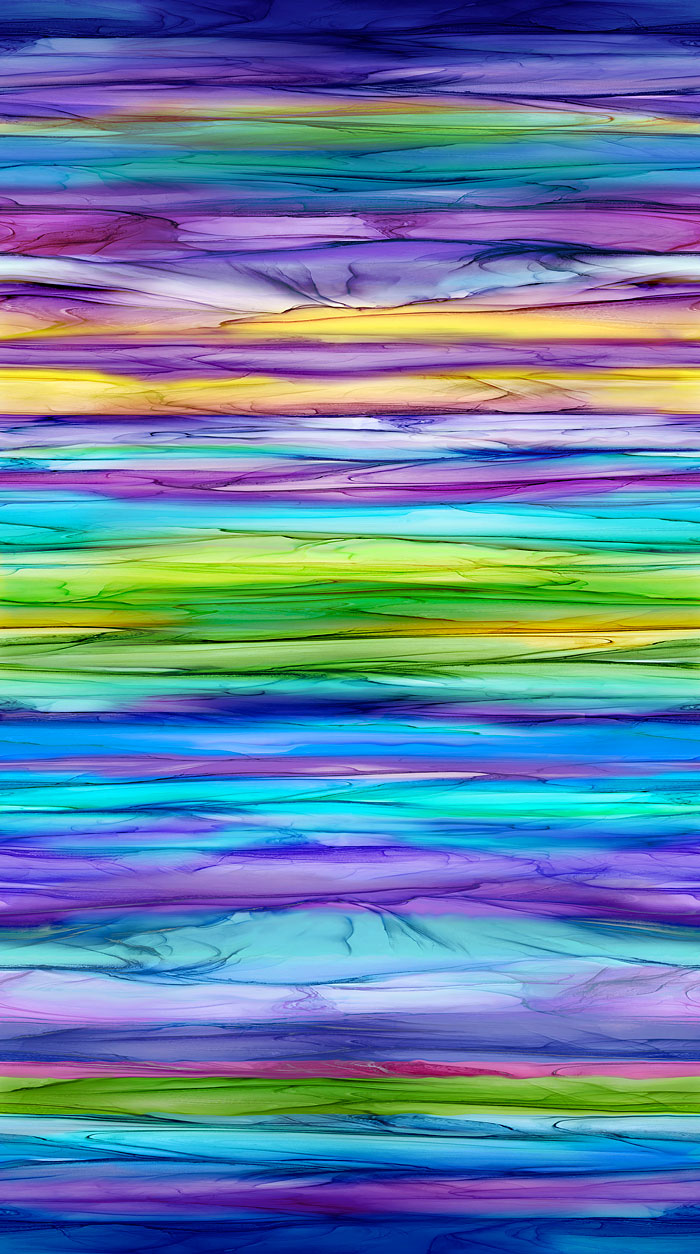 Layered stripes contain a dynamic interplay between color and shadow as vivid hues dance within stunning alcohol ink textures. Digitally printed, wider stripes are about 1" and run the length of the fabric, from the 'Infatuation' collection by Deborah Edwards and Melanie Samra for Northcott Fabrics.