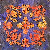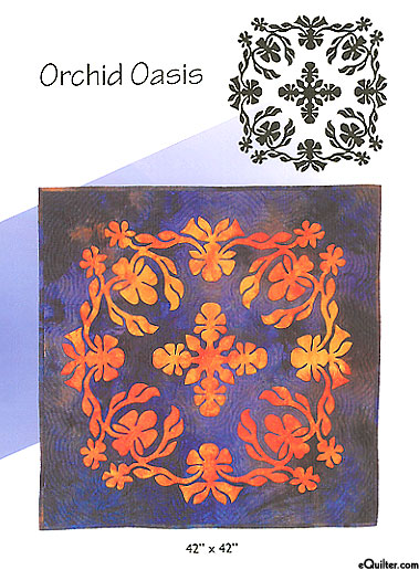Hawaiian quilts are visually complex, yet very easy to make. This gorgeous pattern features a stunning orchid motif. Choose two contrasting fabrics for your quilt top, and a coordinating print for the backing. Pattern recommends using 100% polyester bonded batting to show off the echo quilting rows. Fabric requirements include: 1 1/8 yard applique fabric; 1 1/4 yard background fabric; 1/2 yard binding fabric; 1 1/4 yard backing fabric; 44" square batting. Orchid Oasis pattern, finished size is about 42" x 42", designed by Nancy Lee Chong, from Pacific Rim Quilt Company.