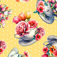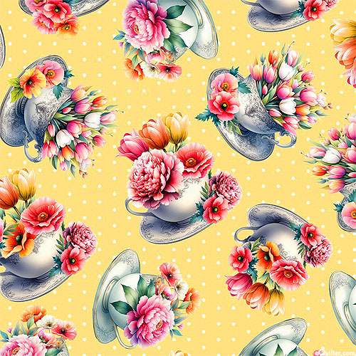 Larger bouquets are about 2-1/2", 'Garden Tea Cups' from the 'Garden Tea' collection by Nicole DeCamp for Benartex Fabrics.