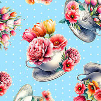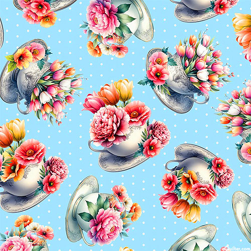 Larger bouquets are about 2-1/2", 'Garden Tea Cups' from the 'Garden Tea' collection by Nicole DeCamp for Benartex Fabrics.