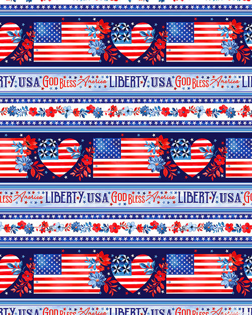 Digitally printed, wider stripes are about 4-1/4", stripes run the length of the fabric, 'Americana Stripe' from the 'Faith, Family, Freedom' collection by Nicole DeCamp for Benartex Fabrics.