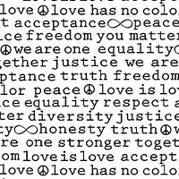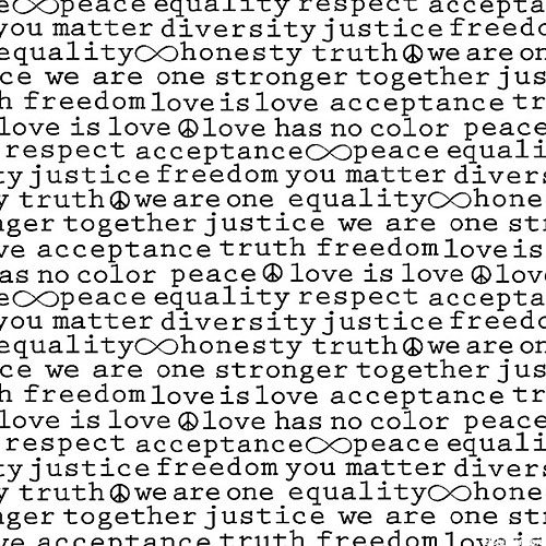 Motivational words such as "Honesty" and "Truth" run in a script-like pattern accented with infinity signs. Taller text is about 3/16", text runs from selvedge to selvedge, 'Peace And Harmony' from the 'Graydations' collection by Michael Miller Fabrics.