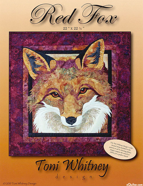 Toni Whitney's wonderfully realistic artwork has captured the wise, curious eyes of this red fox in expressive detail. Use fusible appliqué techniques to create this wall hanging sized wildlife block. Material requirements include: (8) assorted fabrics 13" or less for fox; 6" x 8" plus 2 1/2" WOF inner border; 8" x 16" plus 3" x WOF middle border; 6" x 6 1/2" plus 15" x WOF outer border and binding; 26" x 27" backing and batting; 1 yd fusible web. 'Red Fox' quilt pattern by Toni Whitney Design. Finished size is about 22" x 22 1/2".