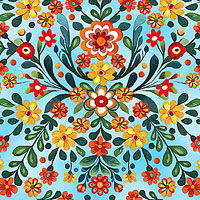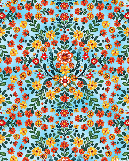Digitally printed, larger flowers are about 1-1/4", 'Folklore Garden' from the 'Farm Feathered Folk' collection by Nicole DeCamp for Benartex Fabrics.