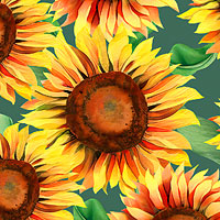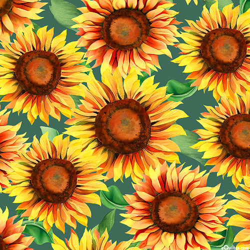 Larger sunflowers are about 4", 'Sunflower Soiree' from the 'Give Thanks' collection by Nicole DeCamp for Benartex Fabrics.