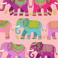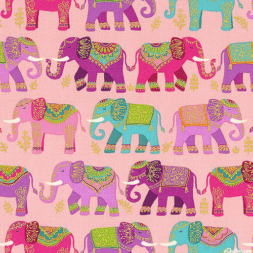 Larger elephants are about 2", with gold metallic, from the 'Jaipur' collection by The Henley Studio for Makower UK.