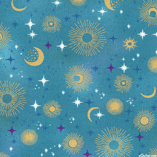 Larger sun bursts are about 1-1/2", with gold metallic, from the 'Luna' collection by The Henley Studio for Makower UK.